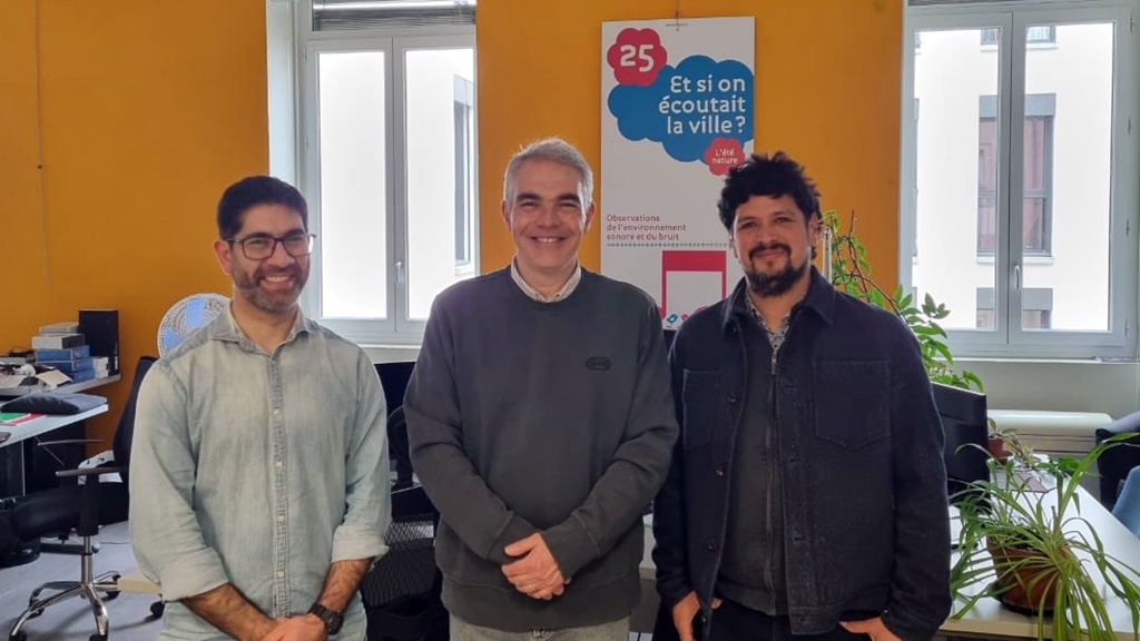 En la foto los profesores Veas y Suárez con Patricio Muños, Directeur Technique, Observatoire de l’environnement sonore de la Métropole de Lyon (https://www.acoucite.org/)