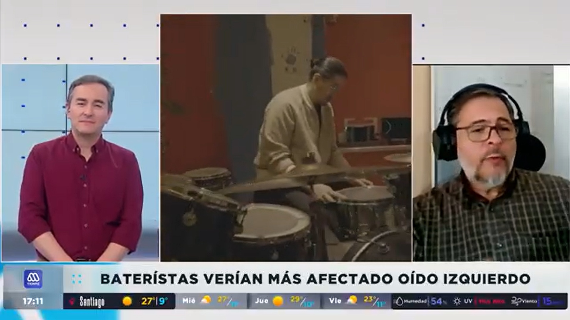 ¿Cuál es la diferencia entre el ruido industrial, que ya se había estudiado, con este ruido que enfrentan los bateristas, los músicos? Bueno, la verdad que no hay tanta diferencia en términos de energía. Una de las diferencias que nosotros apreciamos es que los bateristas, en particular, están expuestos a un tipo de ruido que es distinto al ruido continuo, es un ruido impulsivo, que son ruidos que tienen un altísimo nivel energético y que se desarrollan en un periodo muy corto de tiempo. Por lo tanto, los mecanismos de protección del ruido interno no alcanzan a actuar, y por lo tanto, se sabe que este tipo de ruidos son mucho más peligrosos que el ruido continuo a nivel industrial.