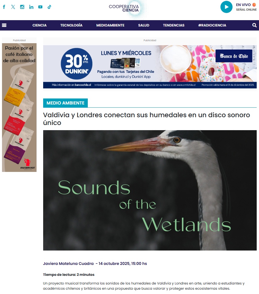 Un proyecto musical transforma los sonidos de los humedales de Valdivia y Londres en arte, uniendo a estudiantes y académicos chilenos y británicos en una propuesta que busca valorar y proteger estos ecosistemas vitales.
