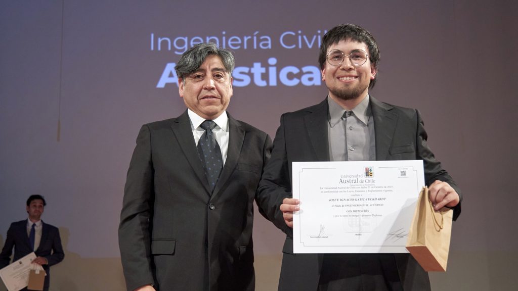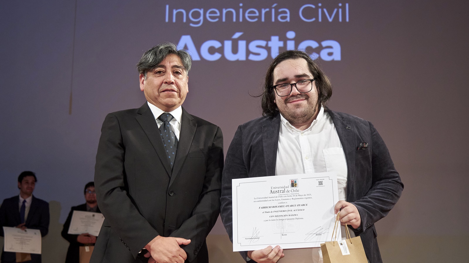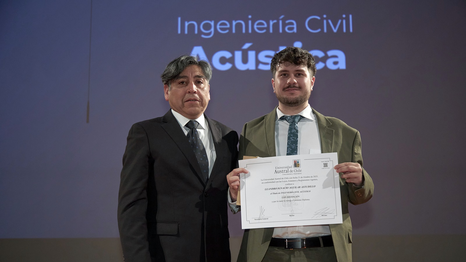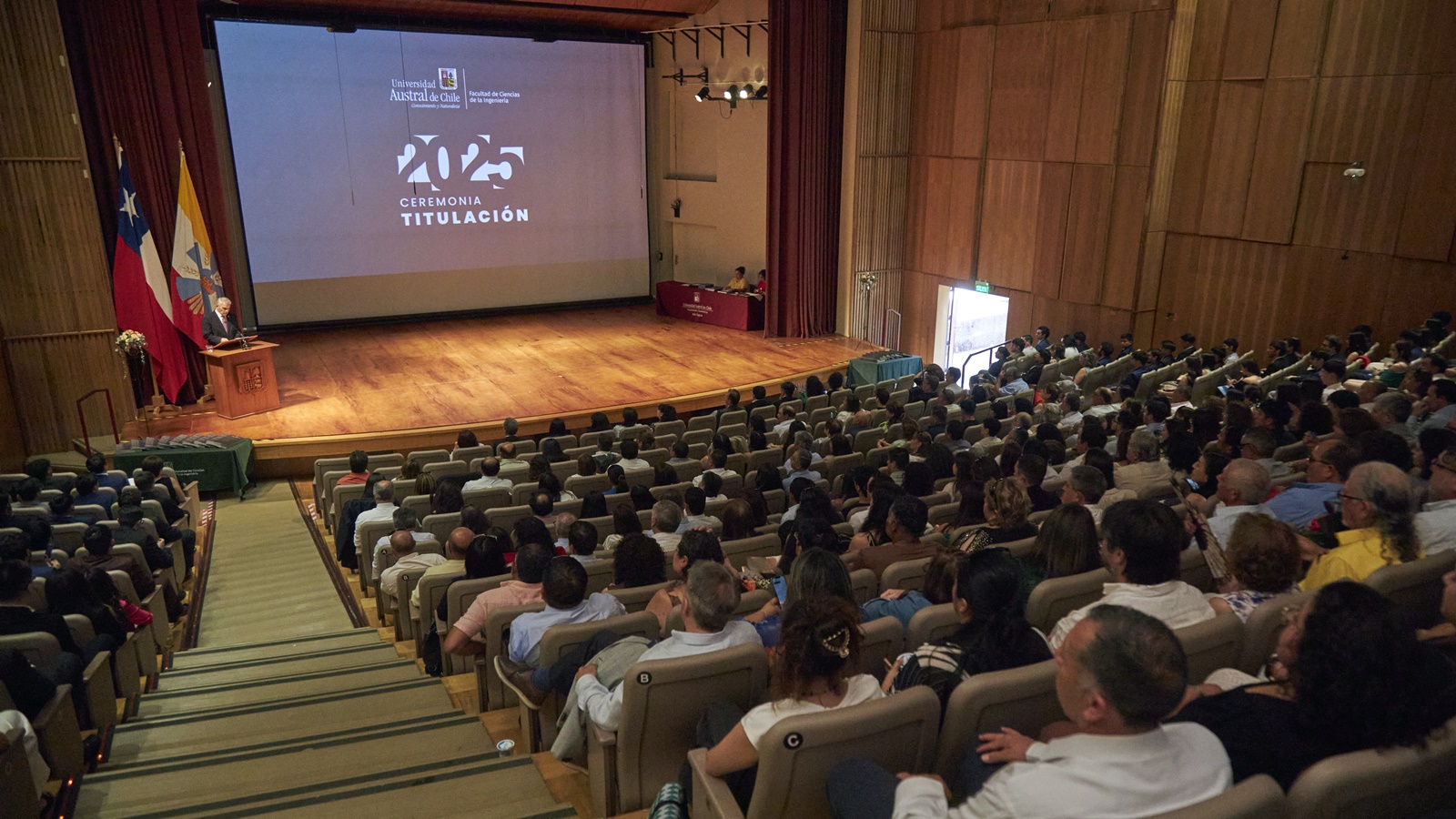 Los solemnes actos iniciaron con las palabras del Decano de la Facultad de Ciencias de la Ingeniería Dr. Enrique Suárez quien durante su alocución sostuvo que “estos títulos representan una tarea cumplida, y también son un recordatorio de que el aprendizaje nunca termina. Ustedes ya saben que siempre habrá algo nuevo que descubrir, que la ingeniería es una disciplina que exige actualización, curiosidad constante y disposición al cambio. Disfruten este momento, celebren con quienes los acompañaron en este camino. Como Universidad Austral de Chile y como Facultad de Ciencias de la Ingeniería, creemos firmemente en ustedes. Sabemos de lo que son capaces, y estaremos aquí aplaudiendo cada uno de sus logros futuros.”