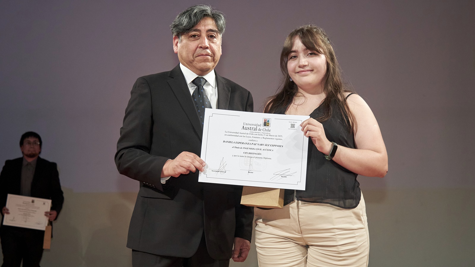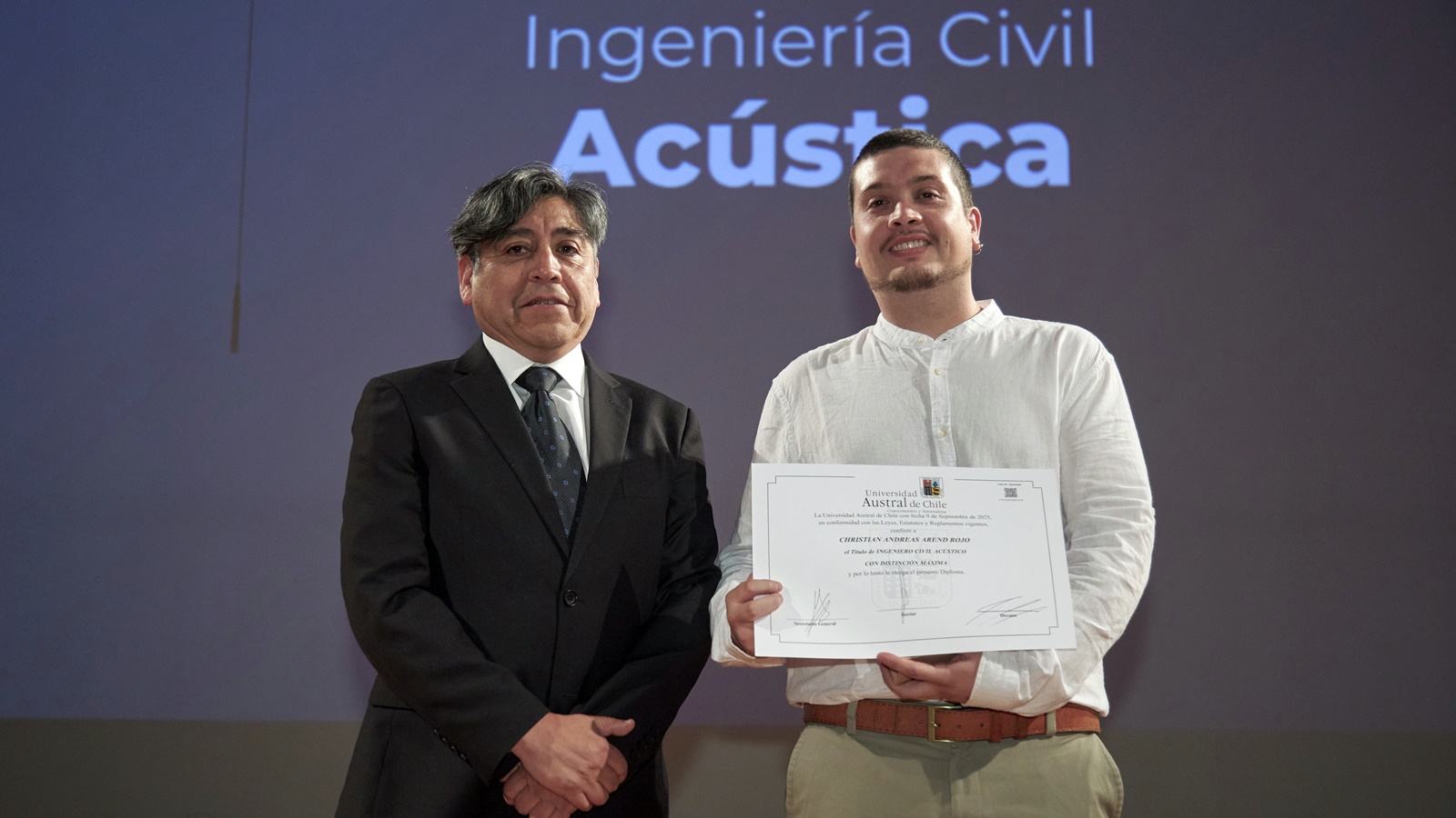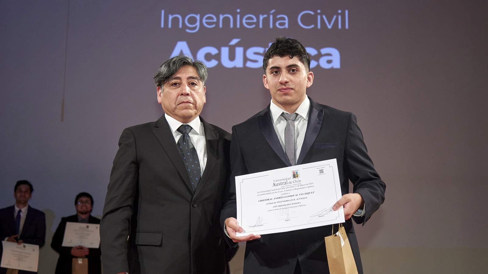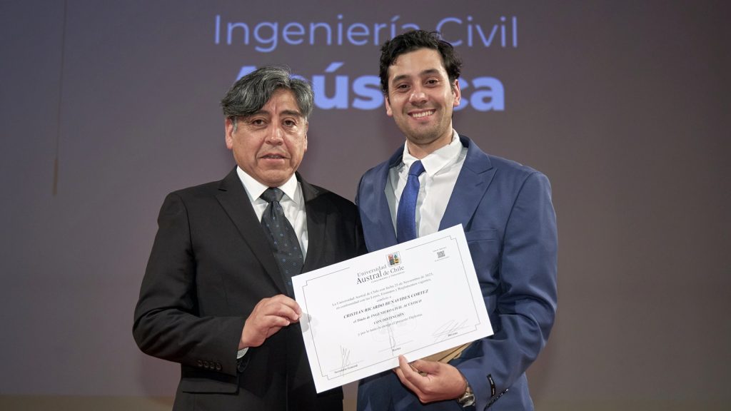 Los solemnes actos iniciaron con las palabras del Decano de la Facultad de Ciencias de la Ingeniería Dr. Enrique Suárez quien durante su alocución sostuvo que “estos títulos representan una tarea cumplida, y también son un recordatorio de que el aprendizaje nunca termina. Ustedes ya saben que siempre habrá algo nuevo que descubrir, que la ingeniería es una disciplina que exige actualización, curiosidad constante y disposición al cambio. Disfruten este momento, celebren con quienes los acompañaron en este camino. Como Universidad Austral de Chile y como Facultad de Ciencias de la Ingeniería, creemos firmemente en ustedes. Sabemos de lo que son capaces, y estaremos aquí aplaudiendo cada uno de sus logros futuros.”